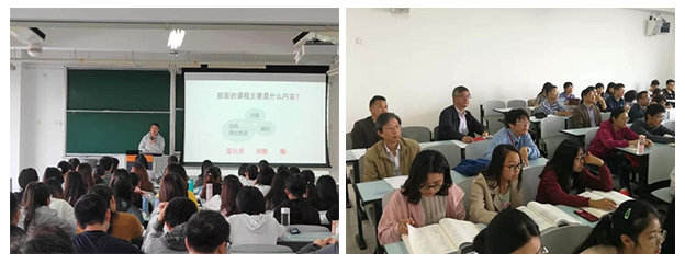 2019年10月28日上午10点, 北京赛车阳怀宇老师的教学公开课《生物化学》在闵行校区第三教学楼202教室开讲。北京赛车党委书记党远鸿老师、常务副院长王群老师、副院长江文正老师、教学委员会教师及部分青年教师等19位老师参加了本次公开课。阳老师从对比蛋白质结构和功能入手,向学生讲解了糖化学的相关知识。课堂上,任课教师精神饱满,学生和听课教师们也都聚精会神。